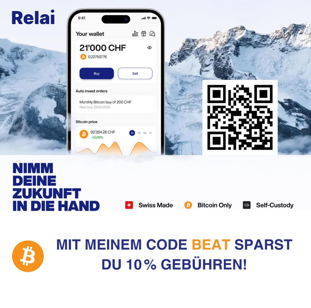 Wenn du sofort loslegen möchtest – kaufe Bitcoin direkt in deine Handy Wallet. Ich empfehle dir die Firma Relai AG aus Zürich. Gebühren 1.0%